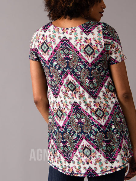 Agnes & Dora™ Everyday Tee Scoop Neck Navy/Fuchsia Boho