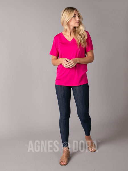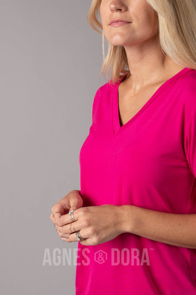 Agnes & Dora™ Straight Fit Tee V-Neck Magenta