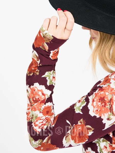 Agnes & Dora™ L/S Tee with Thumbhole Burgundy/Rose Floral