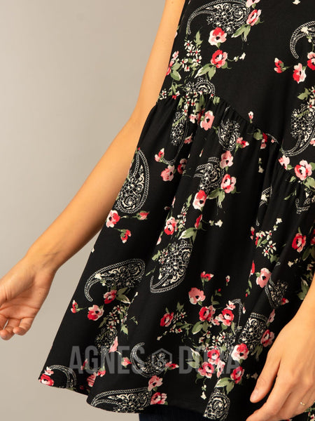 Agnes & Dora™ Muse Tank Black Paisley Pink Floral