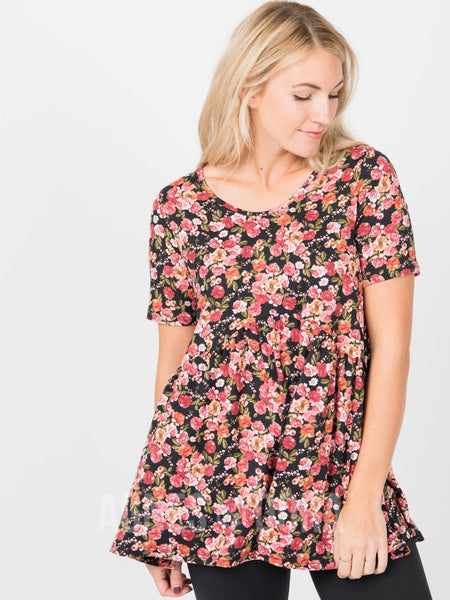 30'' longRound neckShort SleeveTunic LengthLightly gathered skirtModel is 5' 7" wearing a size smallXXS - XXXL