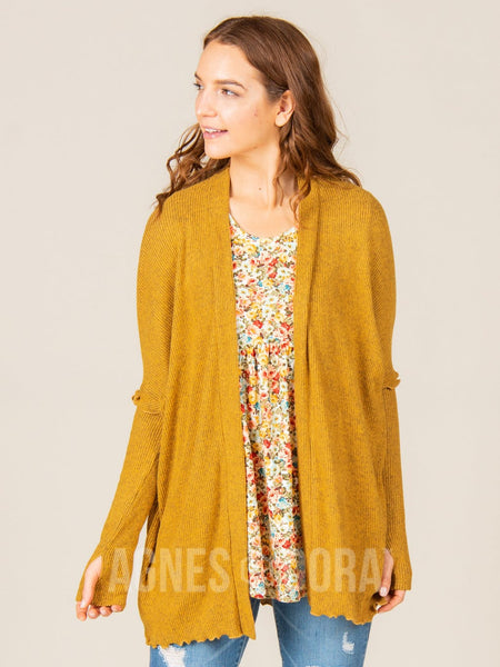 Agnes & Dora™ Open Front Thumbhole Cardi Mustard/Black