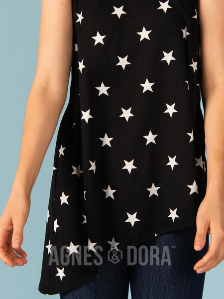 Agnes & Dora™ Asymmetrical Tank Black and White Stars