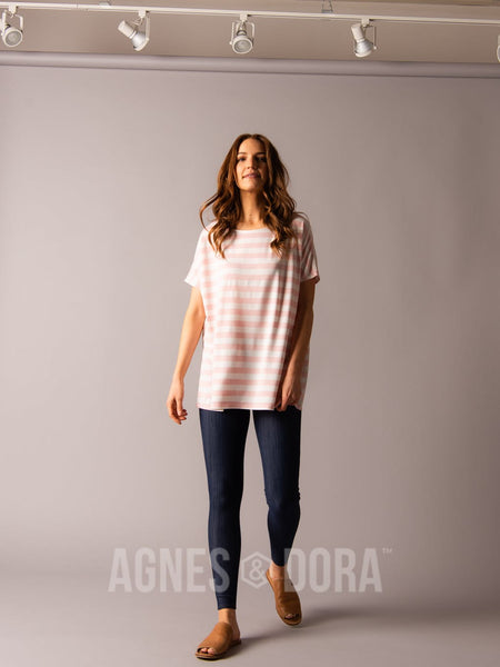 Agnes & Dora™ Boat Neck Tee Pink Stripe