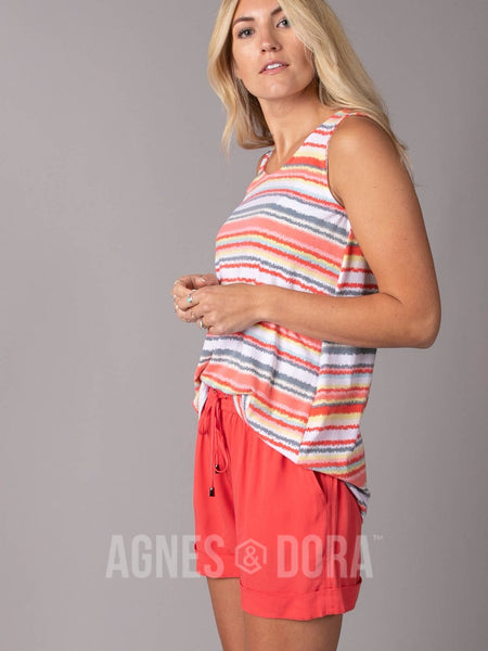 Agnes & Dora™ Essential Tank Scoop Neck Coral/Grey Stripe