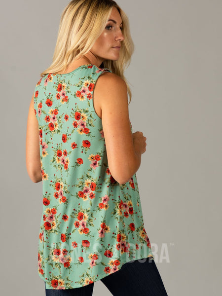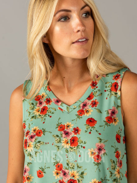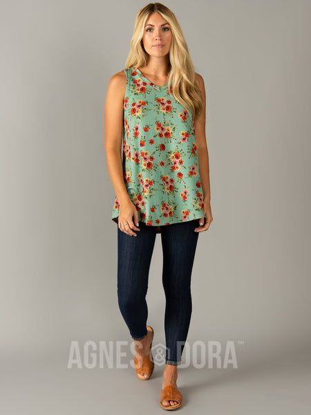 Agnes & Dora™ Essential Tank Deep Mint/Coral Floral