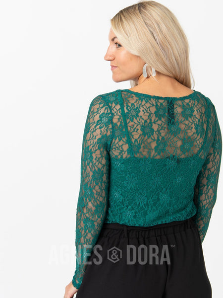 Agnes & Dora™ Fitted Tee Long Sleeve Lace Crew Neck Emerald