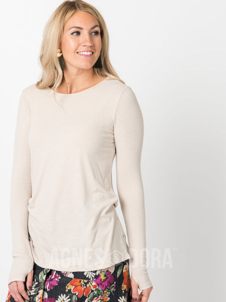 Agnes & Dora™ Fitted Tee Long Sleeve with Thumbhole Oatmeal/Ivory