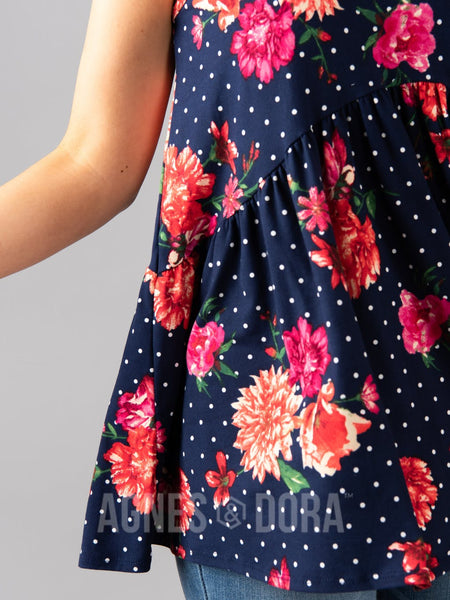 Agnes & Dora™ Sleeveless Muse Navy/Coral/White Floral Dot